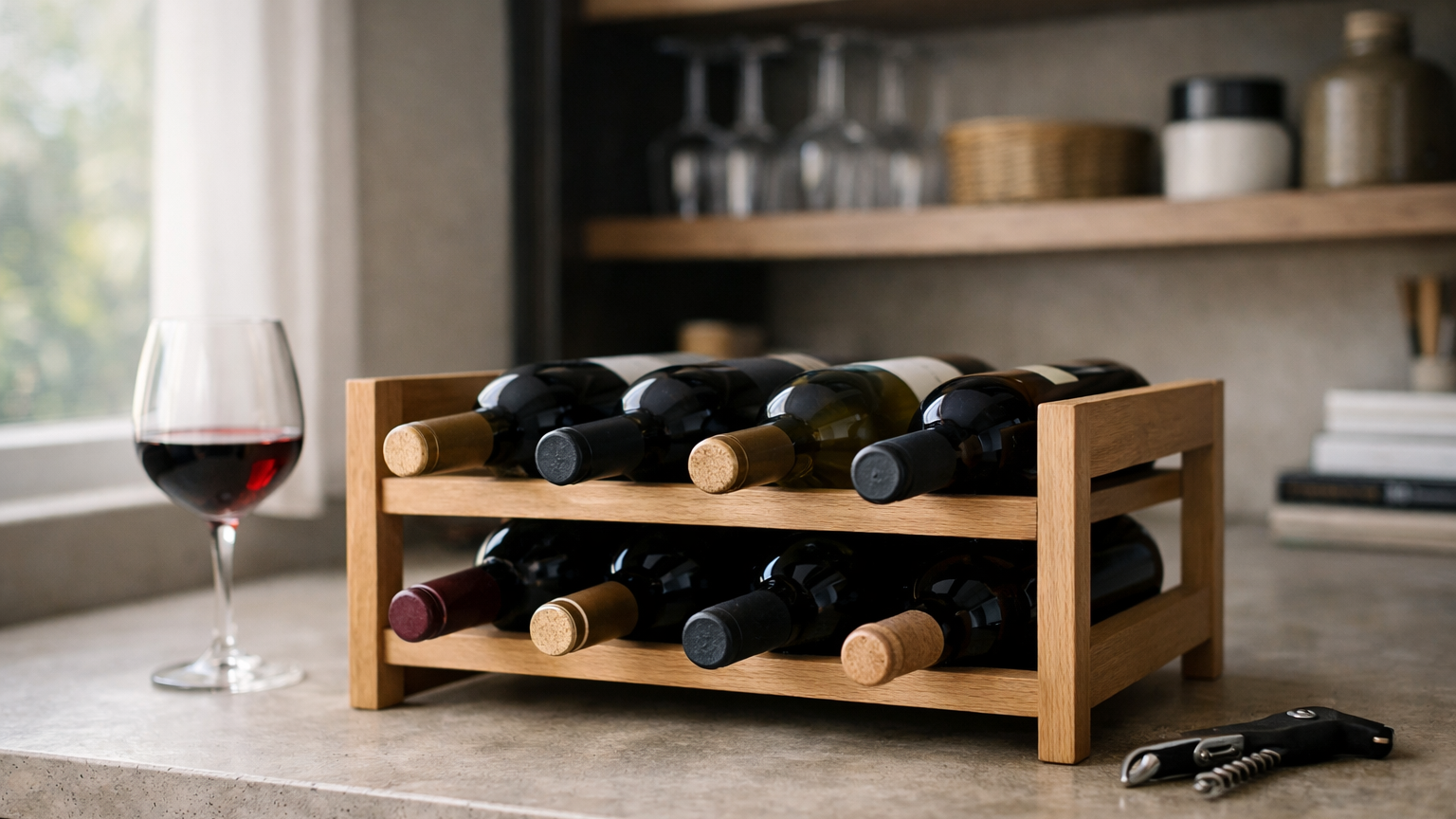• A simple wine rack (keeps corks from drying out)